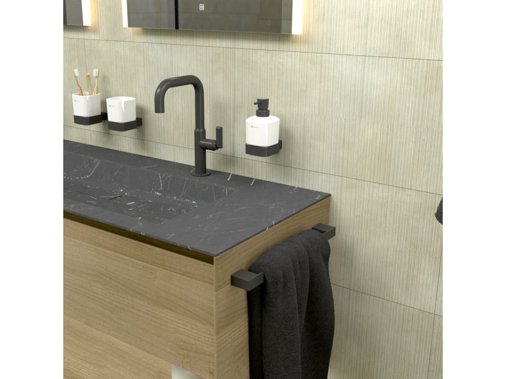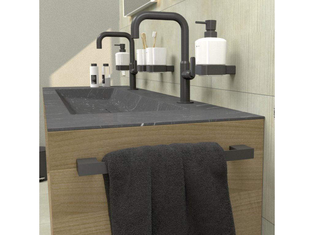 Držák na ručníky a osušky černý mat 63 cm na zeď je skvělým doplňkem do koupelny. Opusťte konvenční tvary a vsaďte na osobitý styl! I zařízení koupelny o vás mnohé vypoví. Současné trendy se stále stáčejí k využívání chladného kovu a hran. Exkluzivní série KIBO nabízí sladění moderních prvků i nadčasovosti.