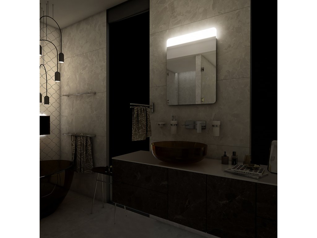 Koupelnové podsvícené LED zrcadlo. Příkon 9 W, barevná teplota 6500 K. 648 Lumen.