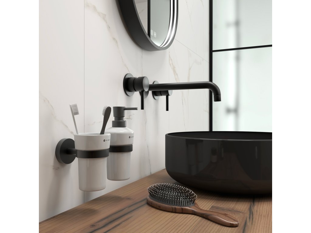 Mýdlenka bude koupelně slušet mnohem více, pokud zvolíte i další doplňky série UNIX černý z nabídky koupelnových a WC doplňků NIMCO.