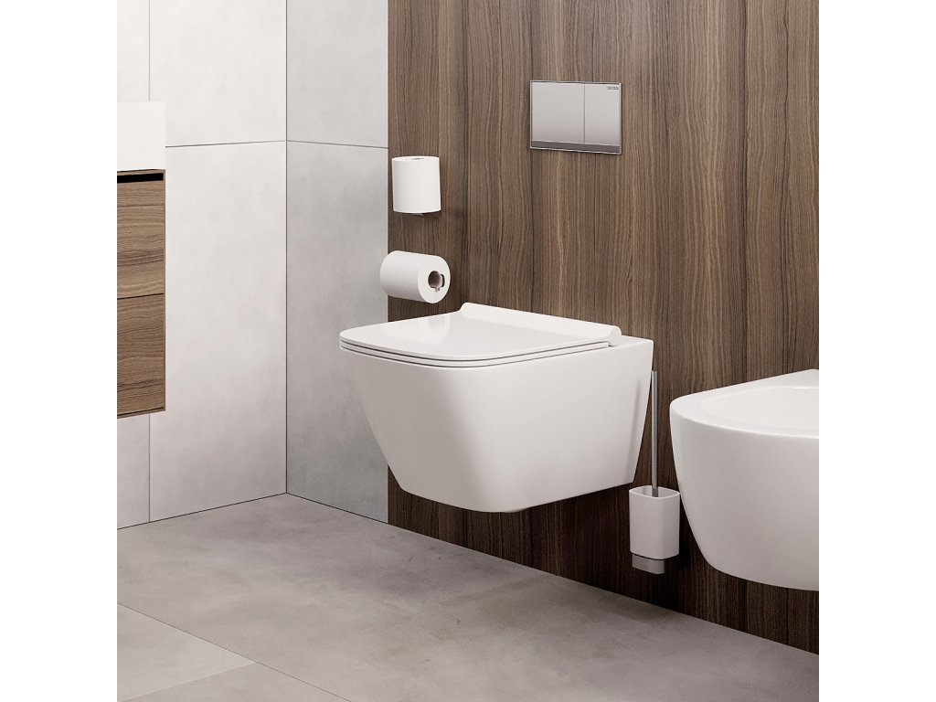 Základní sada doplňků k WC. WC štětka s keramickým držákem na zeď a držák toaletního papíru ze série Nimco Nikau.