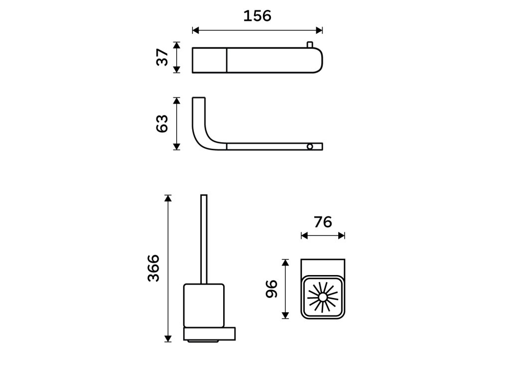 Nástěnný držák s keramickou nádobkou. Rukojeť kartáče černý mat, černý kartáč. 1 ks.
