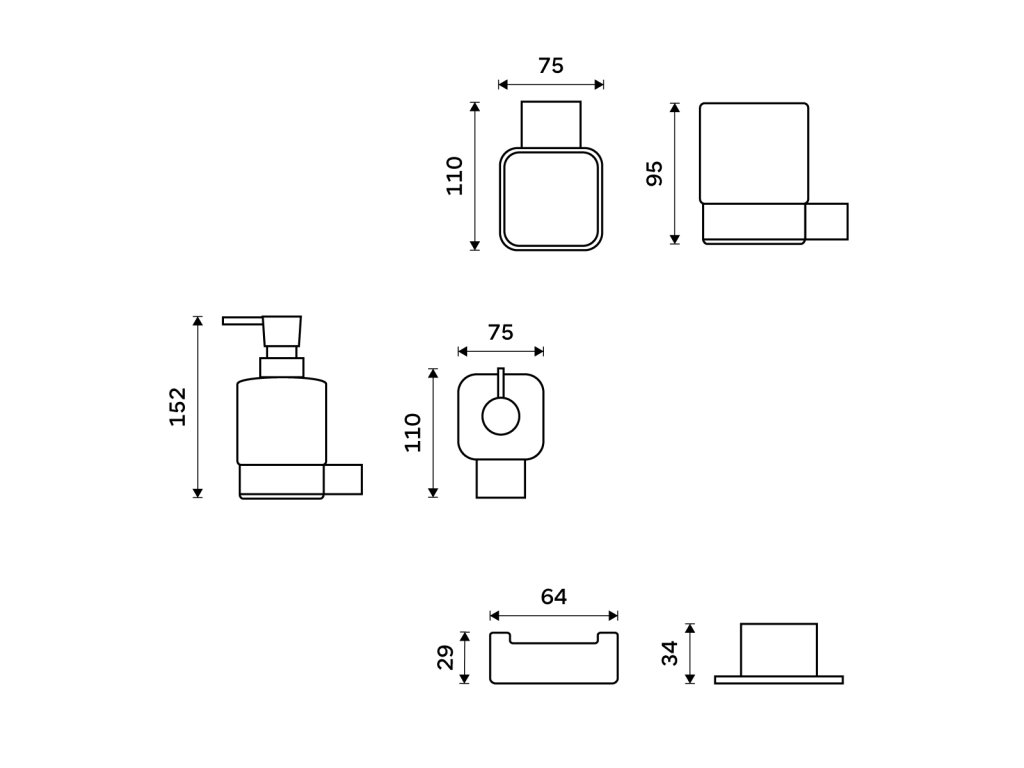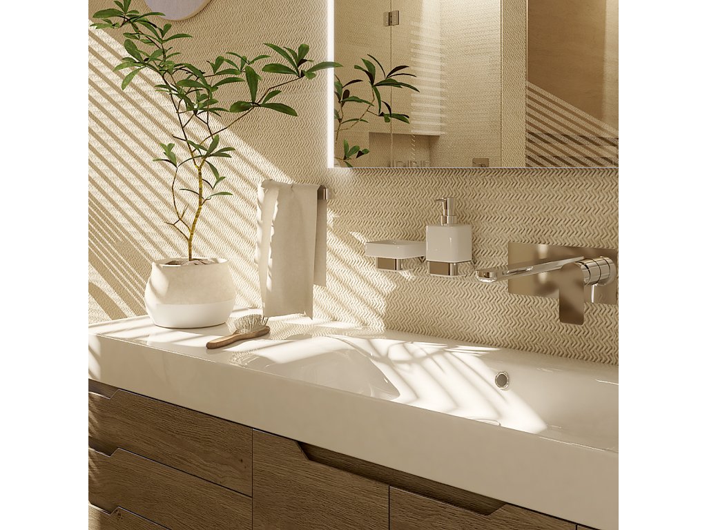 Sada keramických nástěnných koupelnových doplňků - dávkovač mýdla, držák kartáčků, háček na ručník je skvělým doplňkem do koupelny. Tato sada koupelnových doplňků obsahuje následující výrobky NIMCO ze série KIBO: