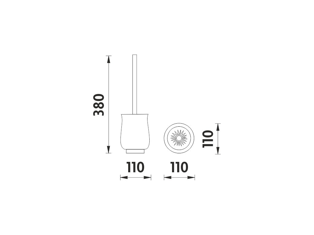 Keramický volně stojící WC kartáč. Rukojeť kartáče kovová. Povrchová úprava rukojeti chrom.