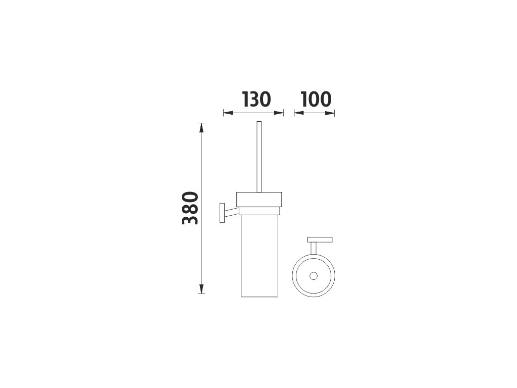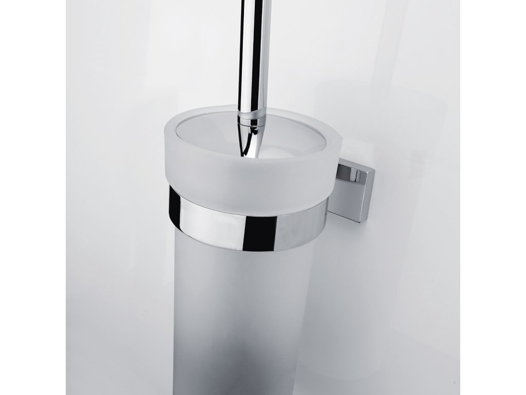 WC štětka. Nádobka vysoká z matného skla. Úchyt mosaz s povrchovou úpravou chrom.