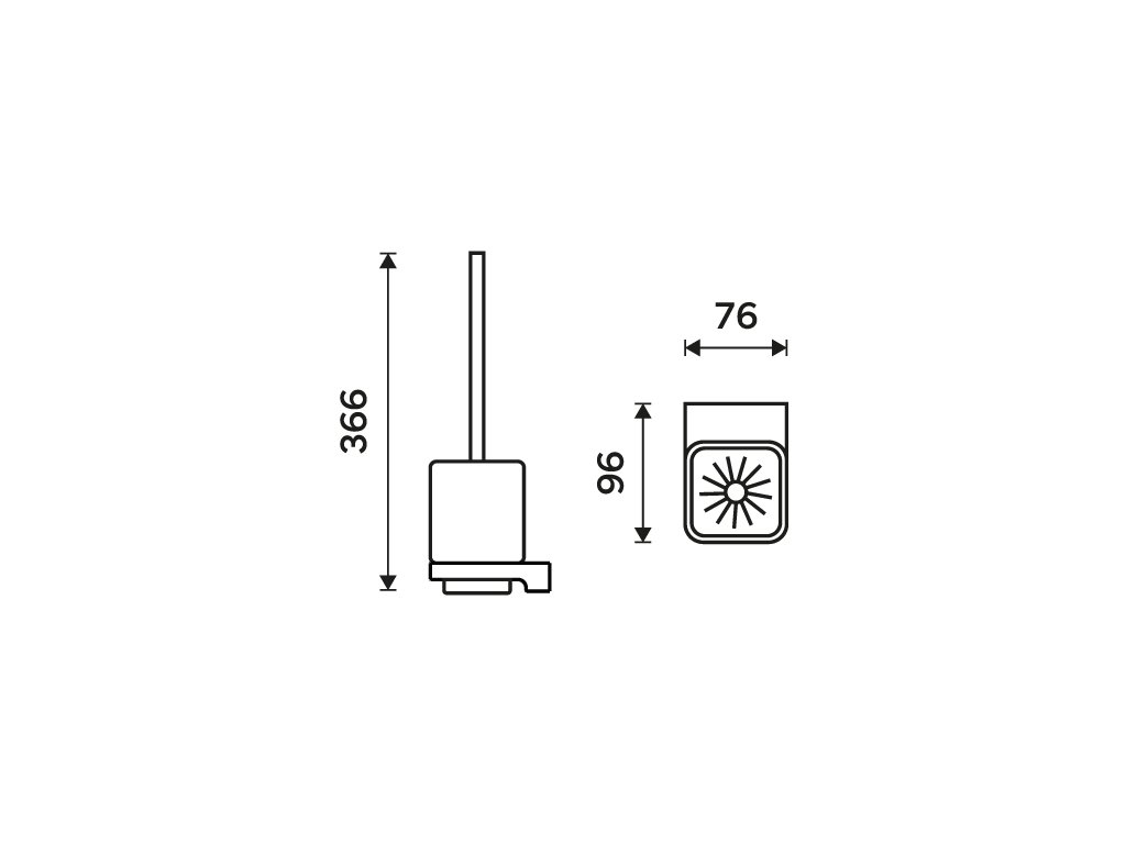 WC štětka s držákem na zeď nízká hranatá keramická nádoba, rukojeť chrom, černý kartáč je skvělým doplňkem k WC.