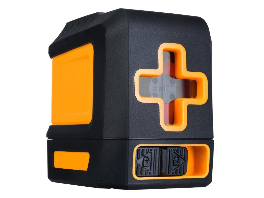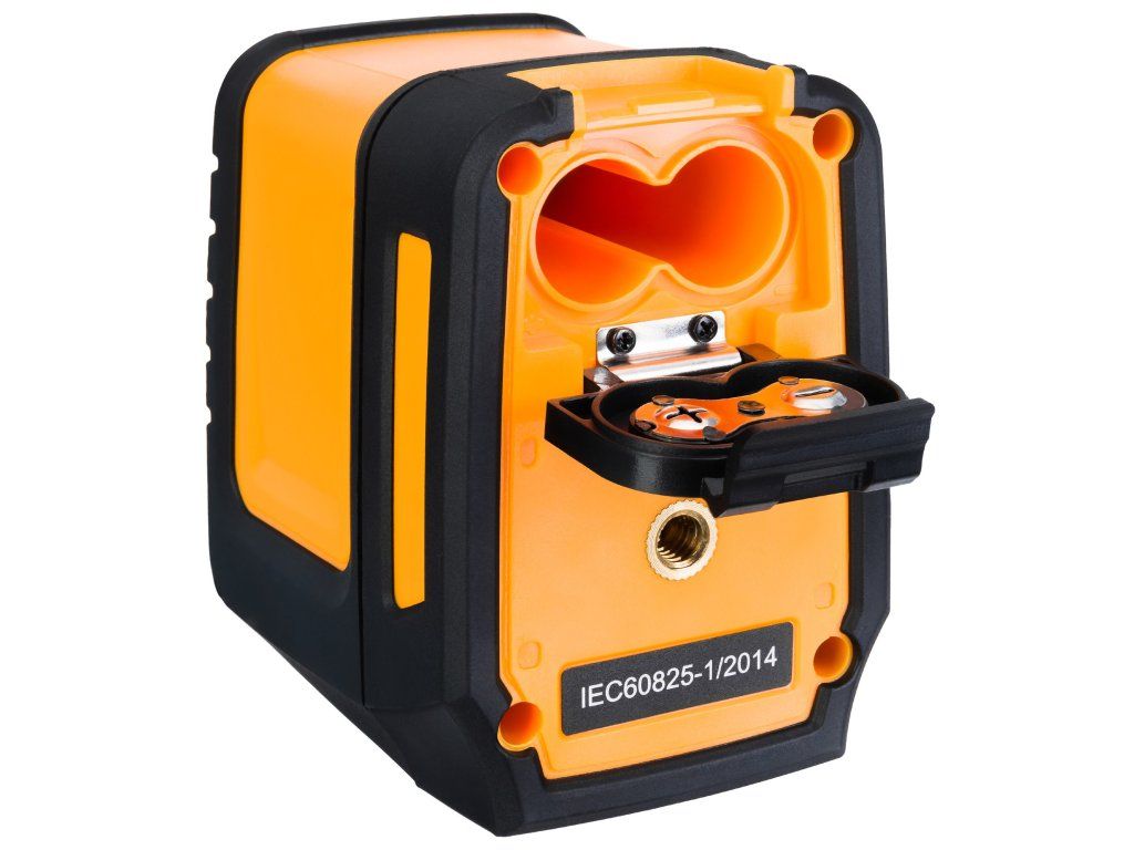 Nivelační přístroj je připravený na pracovní prostředí a zátěž. Odolá prachu, nárazům a nevadí mu, když ho postříkáte vodou. Pokud vlastníte stativ se standardním závitem, jednoduše na něj přístroj uchytíte a nakloníte ho. Dosáhnete tím ideálního úhlu paprsků.