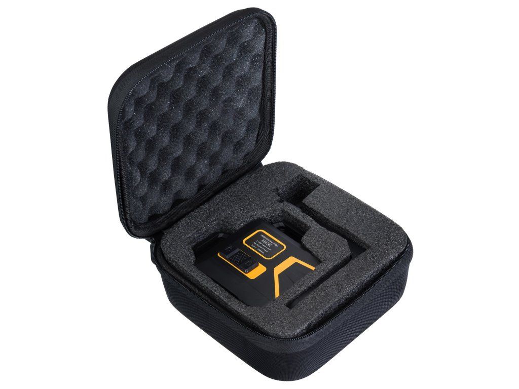 Nivelační přístroj je připravený na pracovní prostředí a zátěž. Odolá prachu, vysokým a nízkým teplotám a nevadí mu, když ho postříkáte vodou. Pokud vlastníte stativ se standardním závitem, jednoduše na něj přístroj uchytíte a nakloníte ho. Dosáhnete tím ideálního úhlu paprsků.