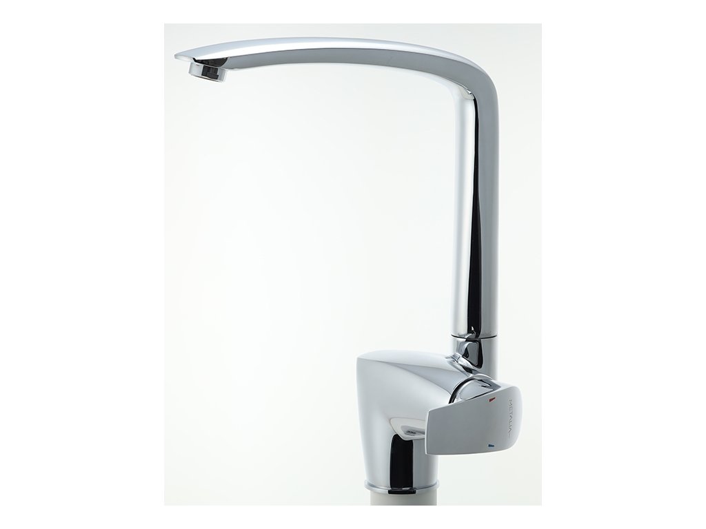 Kvalitní a odolná keramická kartuše KEROX 35 mm s prodlouženou zárukou 7 let. Prvotřídní chromové provedení. Stojánková dřezová baterie se sklápěcím ramenem určená pro dřezy, které jsou umístěny pod oknem. Součástí baterie jsou přívodní hadičky.