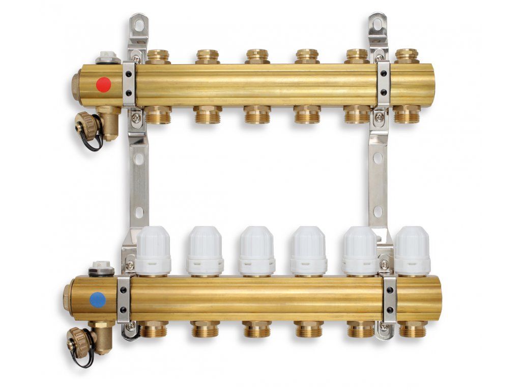 ČESKÝ VÝROBEKMosazné rozdělovače pro 2-12 vytápěných okruhů se zárukou 15 let. Kompletní sortiment příslušenství včetně náhradních dílů