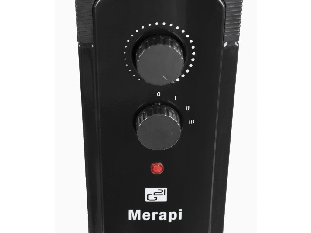 Výkonný, tichý, bezúdržbový, spolehlivý, bezpečný a efektivní – těchto šest slov dokonale vystihuje olejový radiátor G21 Merapi. Jedenáctižebrový radiátor s vysokým výkonem a tichým chodem vyhřeje všechny prostory s nedostatečným nebo žádným vytápěním. Využijete jej například k přitápění v obytných prostorách včetně ložnic, k vyhřátí chaty a podobně.