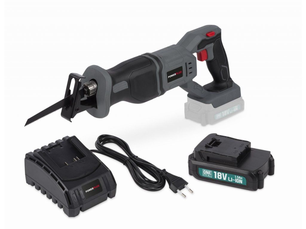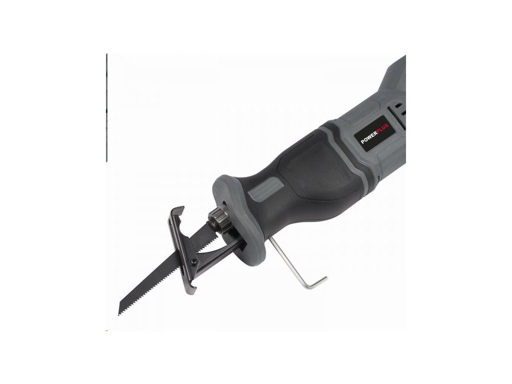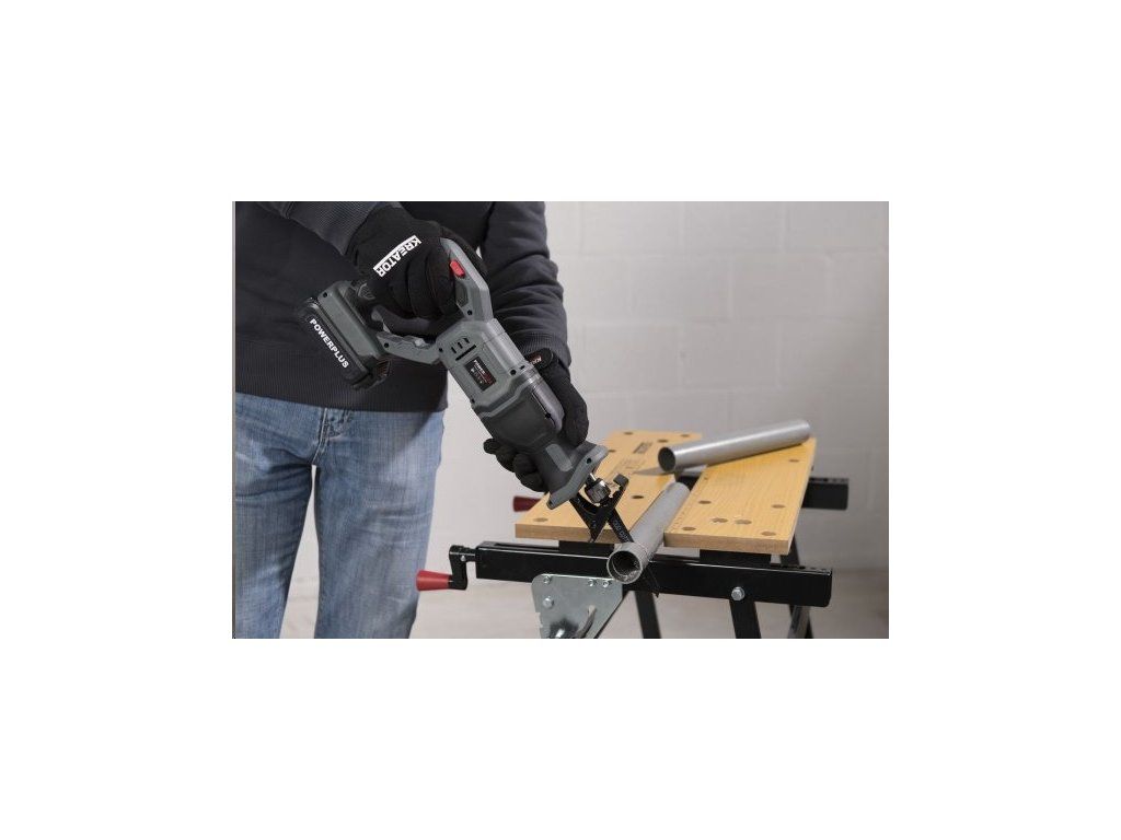 AKU ocasová pila POWEBSET24 značky Powerplus využívá pro práci sílu s otáčkami na prázdno 2600 min-1. V řezání vám bude pomáhat nastavitelná kyvná patka a ergonomicky tvarovaná rukojeť s měkčeným držadlem.