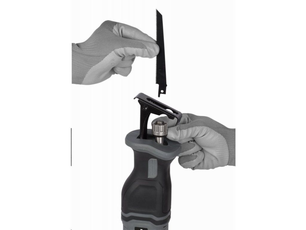 Řezný list lehce a rychle připevníte rychloupínacím sklíčidlem. Píla řeže až do hloubky 100 mm u dřeva a v případě oceli / hliníku do hloubky 6 mm.