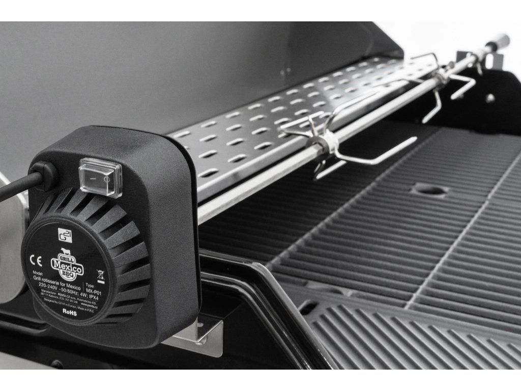 - součástí grilu je i teploměr ve víku a grilovací jehla s motorkem