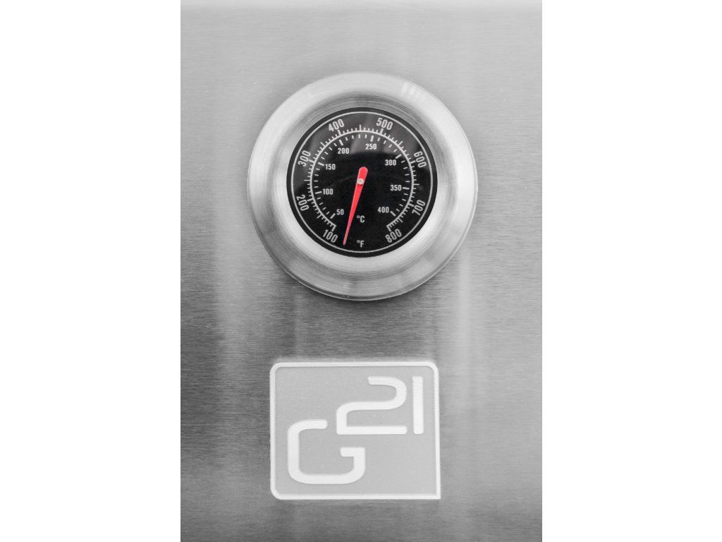 Pojízdný plynový gril G21 má 4 kolečka, která vám usnadní jeho přesouvání z místa na místo. Pod grilovací částí se nachází prostor pro 10kg plynovou bombu. Uvnitř dvířek navíc najdete úložný košík na různé grilovací příslušenství. Piezzoelektrické zapalování vám umožní jednoduché spuštění grilu stisknutím tlačítka.