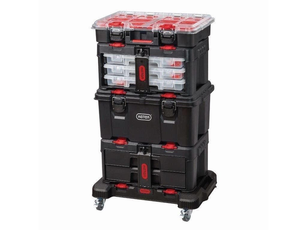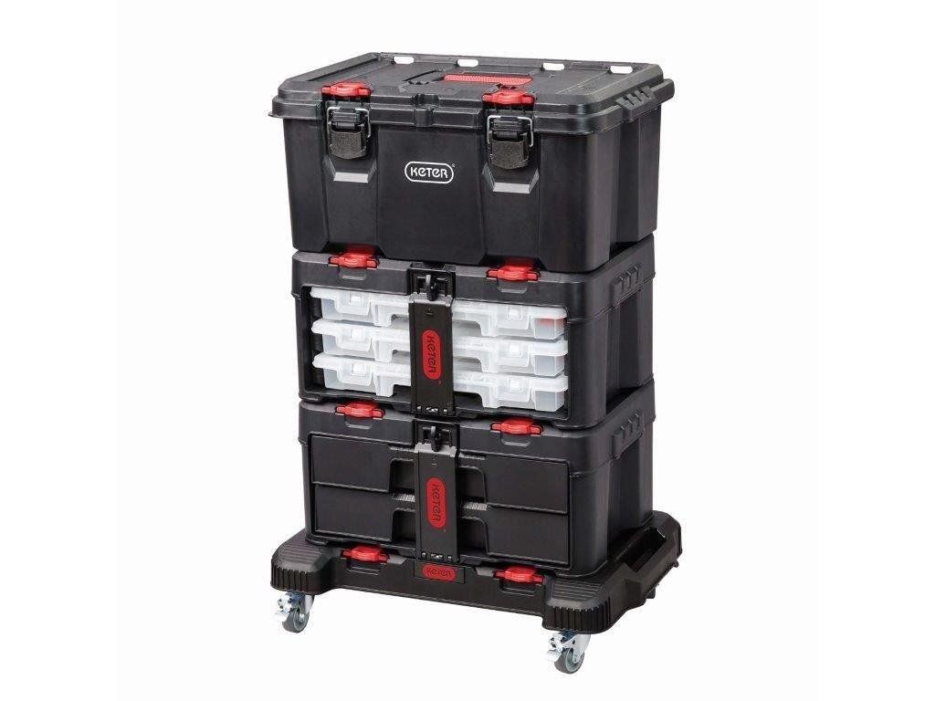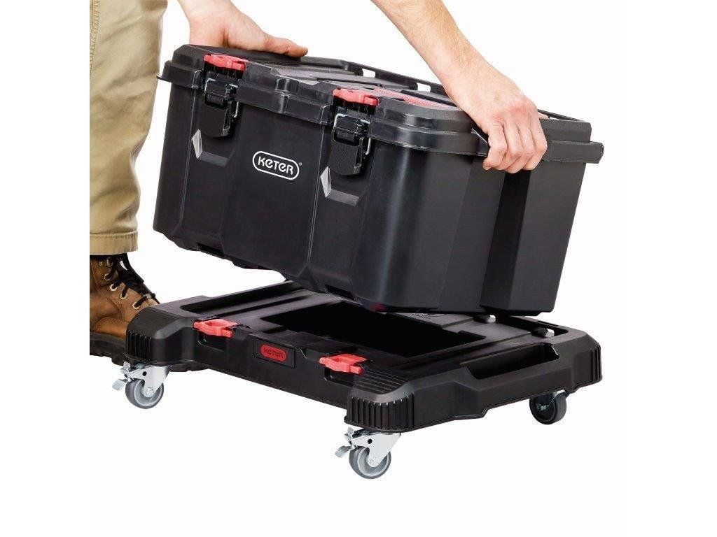 Mobilní podložka Keter Stack'N'Roll představuje praktické řešení pro vaši dílnu i garáž. Využijete ji jako samostatnou pracovní plochu nebo pojízdný základ pro produkty stejnojmenné modulární řady. S nosností až 100 kg bez problému zvládne i těžší přesuny.