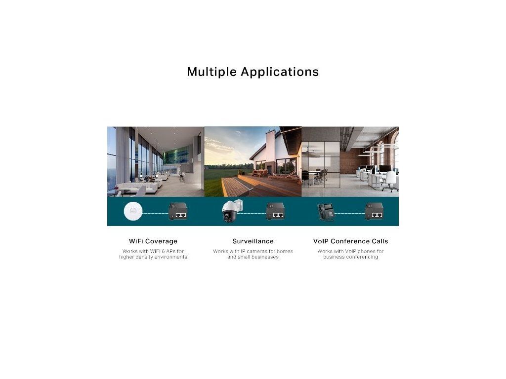 Adaptér je kompatibilní se standardy IEEE 802.3af/at. Funguje se všemi IEEE 802.3af/at PoE PD (Powered Device) zařízeními. Pro přenos dat i napájení využívá ethernetový kabel. Napájecí výkon dosahuje hodnoty až 30 W. Adaptér automaticky dodává potřebný výkon připojenému zařízení. Sám ho přizpůsobuje podle požadavků.
