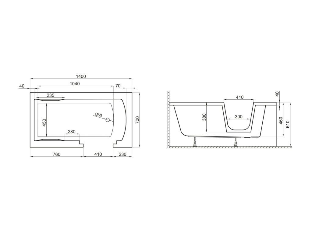 Polimat Avo 140x70 sedací akrylátová vana s dvířky, 00306