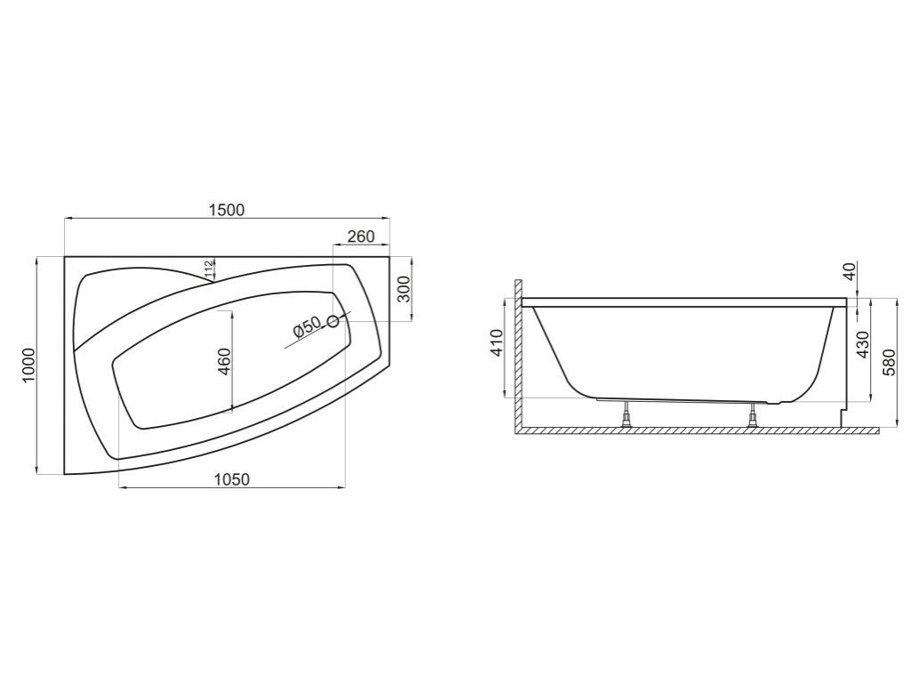 | Tvar vany: | asymetrické |