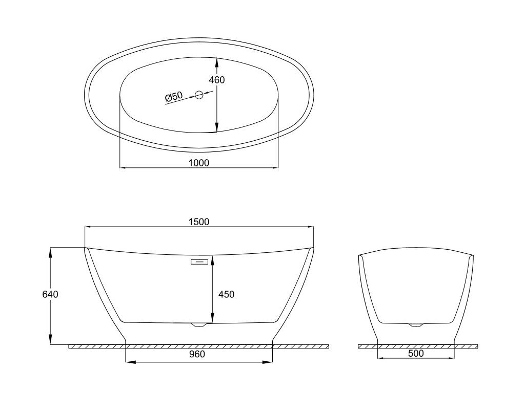 Specifikace volně stojící akrylátové vany Mango