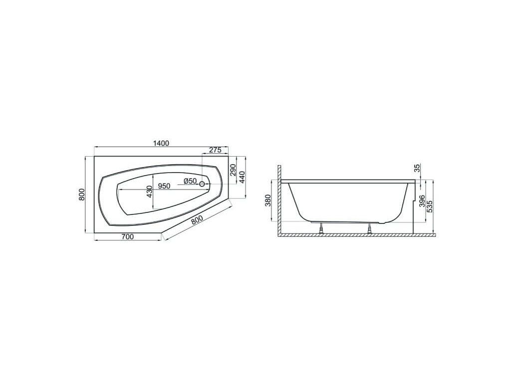 | Tvar vany: | asymetrické |