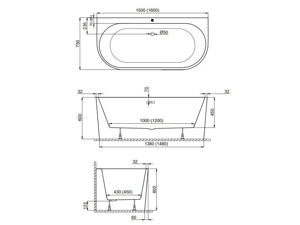Polimat Sola I volně stojící akrylátová vana, bílá Délka vany: 160cm, 00330