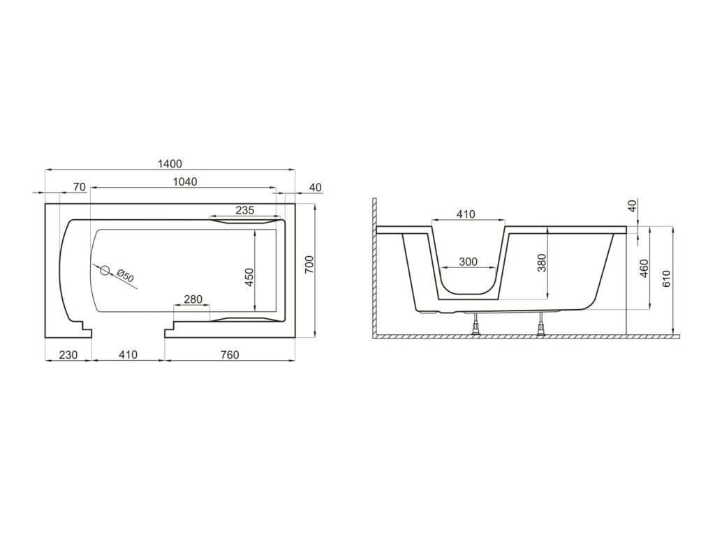 - rozměry vany 140x70