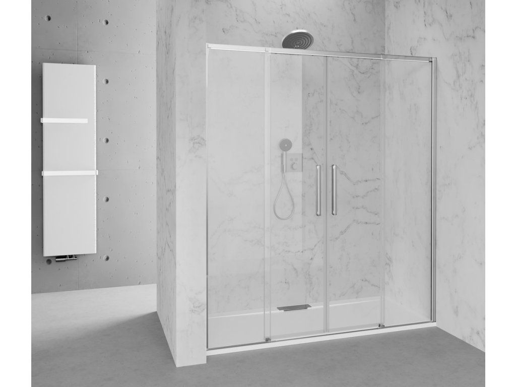 - Dveře jsou děleny na část posuvnou a část pevnou - umožňují variabilní instalaci s levým nebo pravým otevíráním.