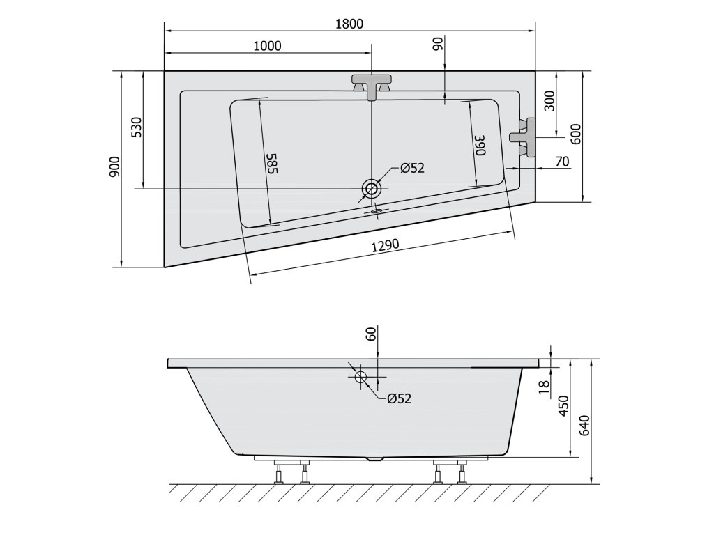 Vana má oproti standardním vanám výšku hrany okraje pouze 18 mm. Tato vana je určena pouze k obezdění, které díky nízké hraně působí estetičtěji, nebo zapuštění do pódia. Nelze ji instalovat s obkladovým panelem.