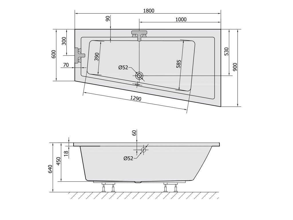 Vana má oproti standardním vanám výšku hrany okraje pouze 18 mm. Tato vana je určena pouze k obezdění, které díky nízké hraně působí estetičtěji, nebo zapuštění do pódia. Nelze ji instalovat s obkladovým panelem.