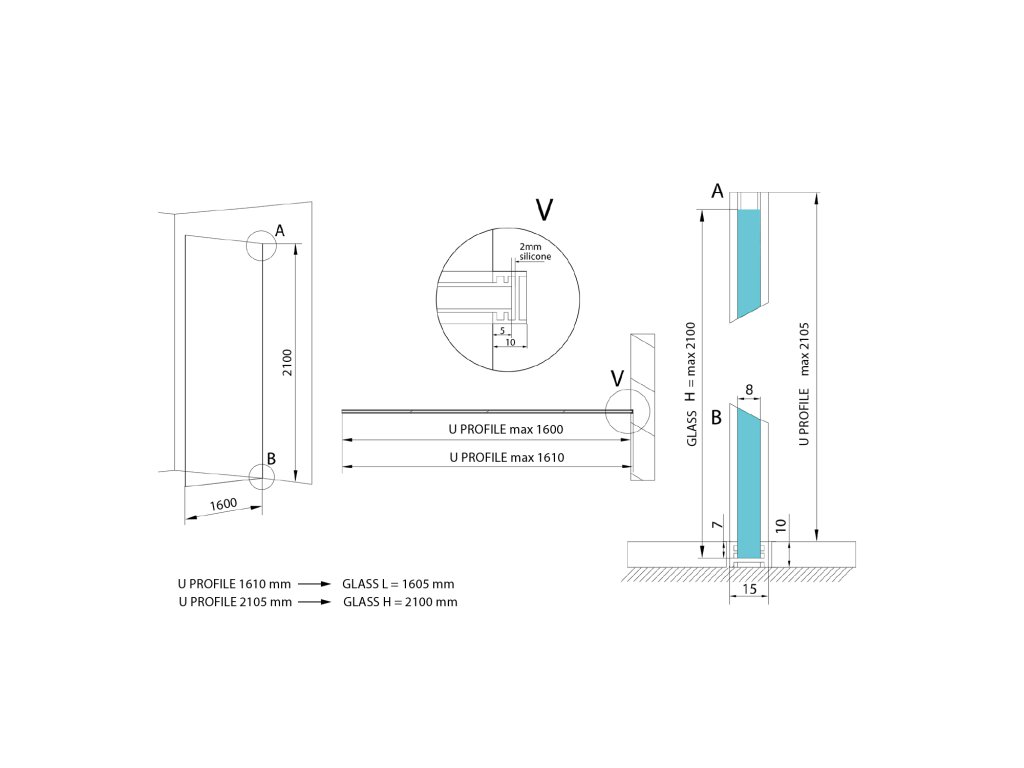 Polysan ARCHITEX sada pro neviditelné uchycení skla, podlaha-stěna, 1610x2105mm, černá mat AL2116B