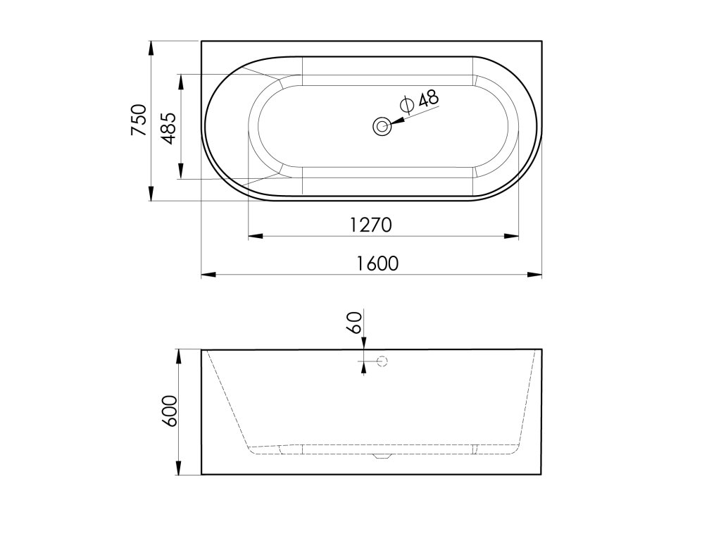 Polysan ASTRA DL MONOLITH nástěnná stojící vana 160x75x60cm, bílá 33611MDL