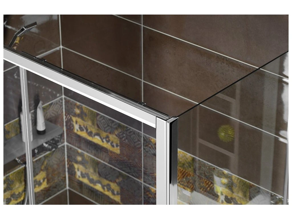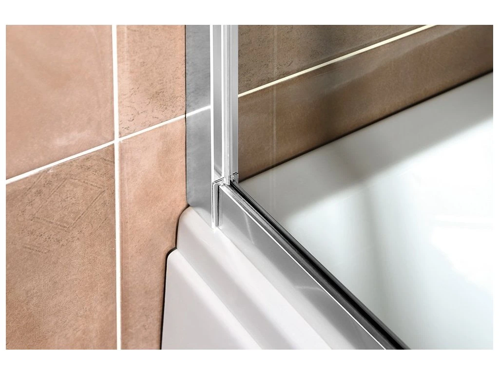 Případné nerovnosti stěny elegantně skryje profil, do kterého se zasouvá sklo dle potřeby až 20 mm