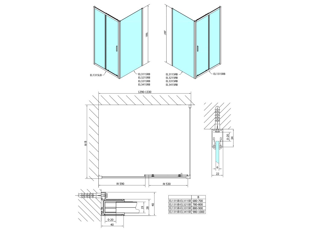 • Instalační rozměr dveří do niky lze díky rozšiřovacímu profilu EL825 zvětšit o 25 mm na každou stranu, celkem o 50 mm