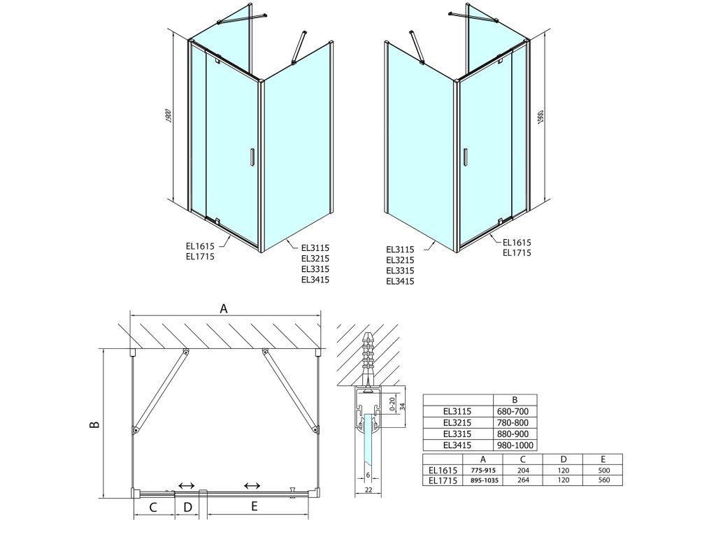 • Instalační rozměr dveří do niky lze díky rozšiřovacímu profilu EL825 zvětšit o 25 mm na každou stranu, celkem o 50 mm