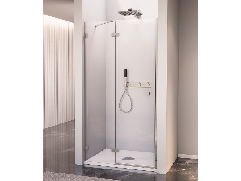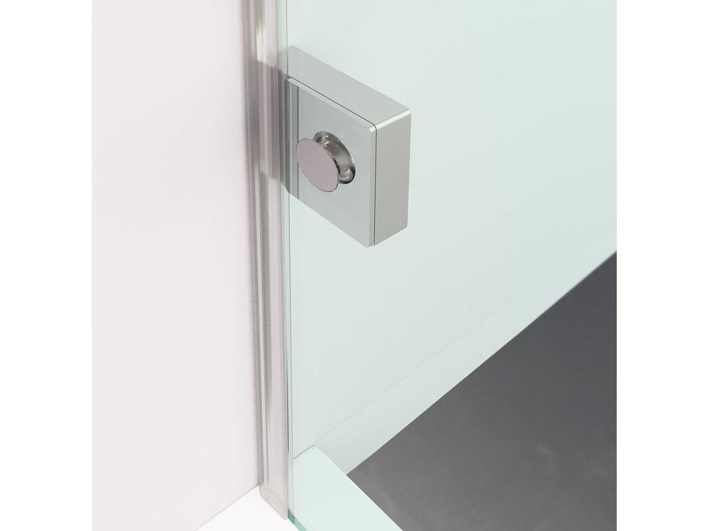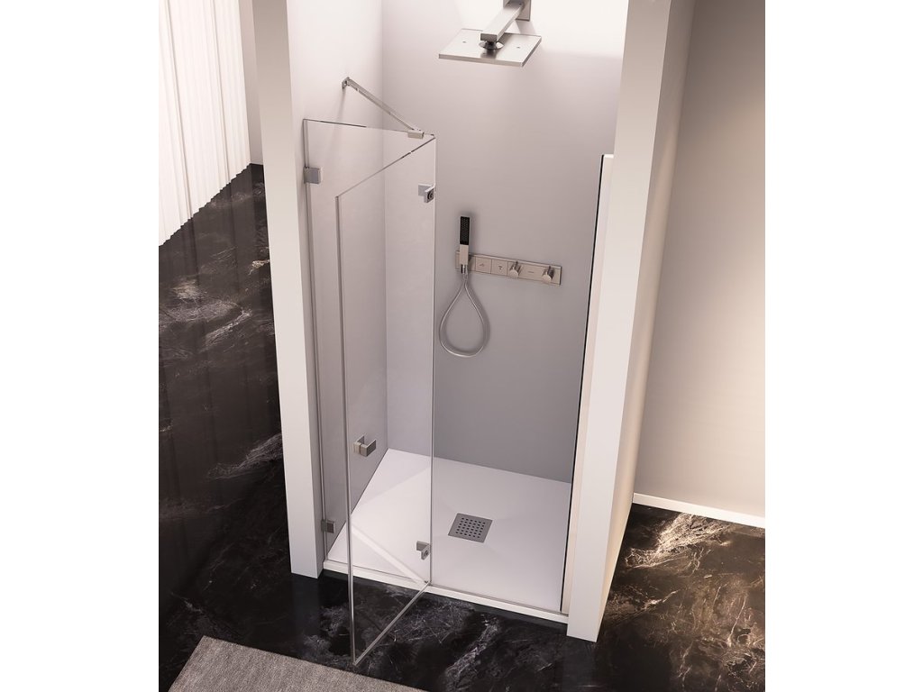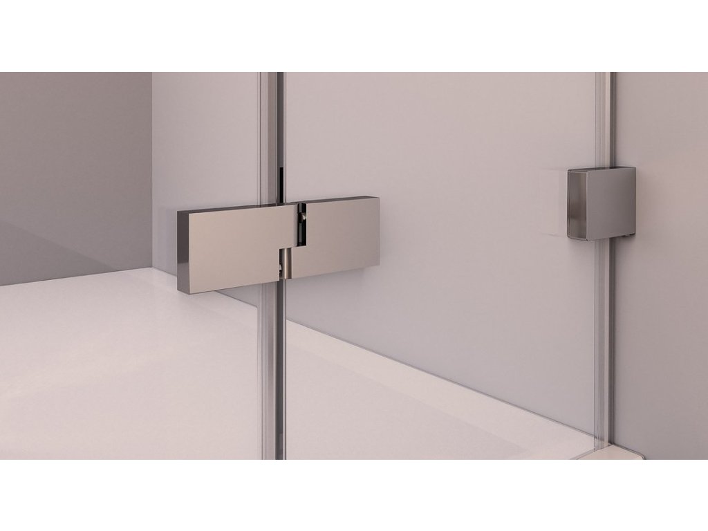Bezprofilové pantové zástěny FORTIS EDGE v moderním hranatém designu. Minimalistické pochromované panty v nekompromisním hranatém designu, zevnitř zapuštěné pro snadné čištění a se zvedací funkcí pro pohodlné otevírání. Bezpečnostní čiré sklo v tloušťce 8 mm je ošetřené povrchovou úpravou ANTIDROP pro snadné čištění. Výška 2000 mm. Hranaté pochromované madlo ve stejném minimalistickém designu jako panty.