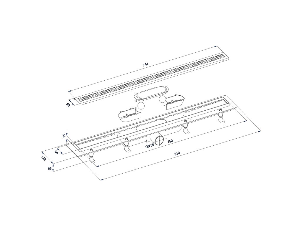 Polysan INDY podlahový žlab s nerezovým roštem, L-810, DN50 73651