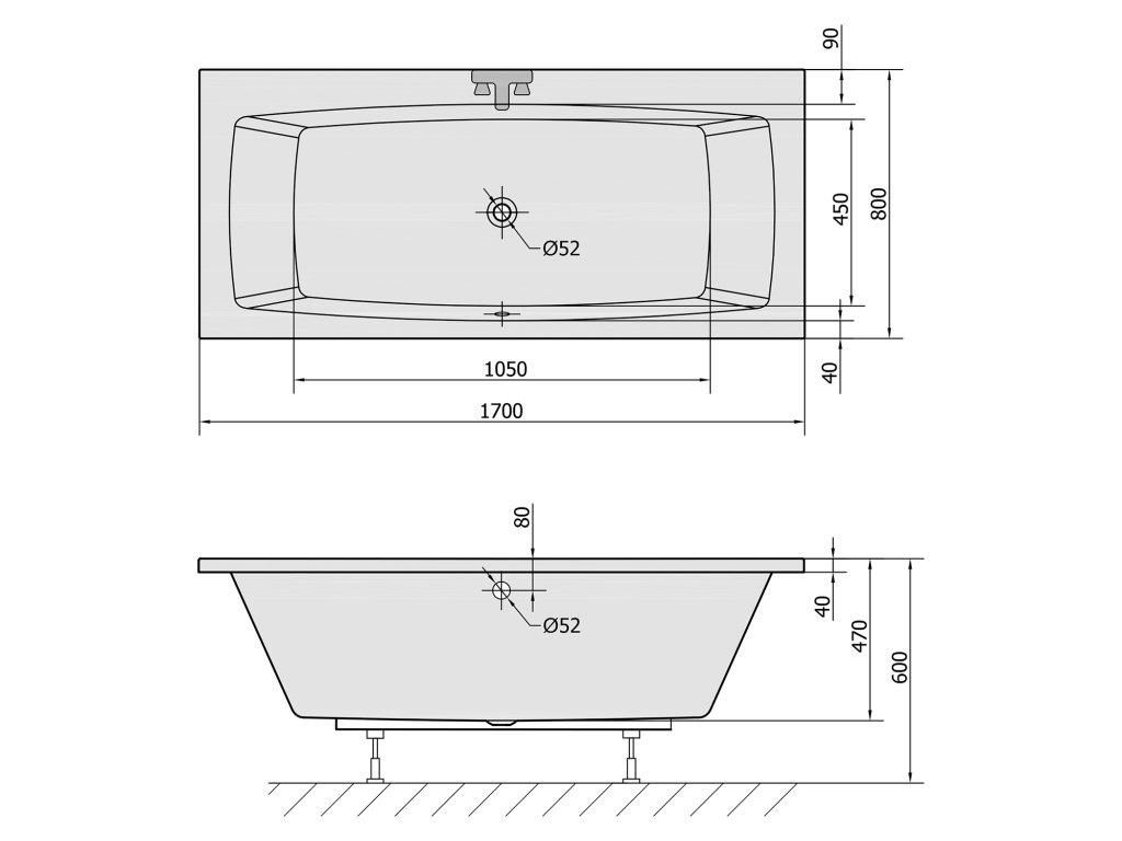 Polysan KVADRA obdélníková vana s konstrukcí 170x80x47cm, bílá 18711
