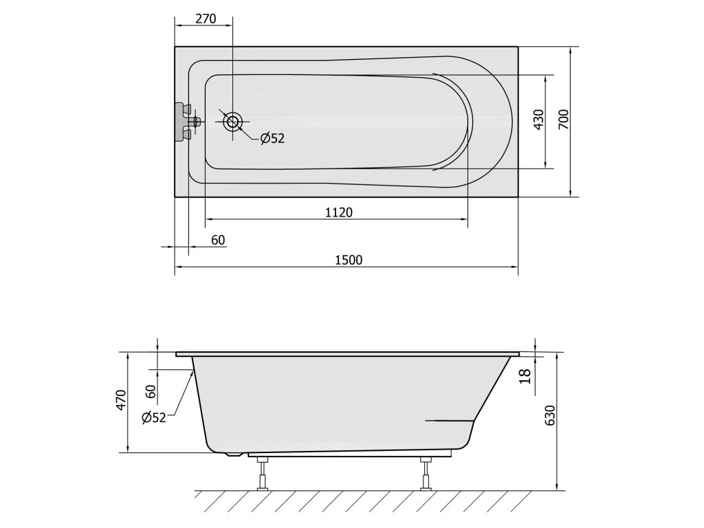 Polysan LISA SLIM obdélníková vana 150x70x47cm, bílá 85111S