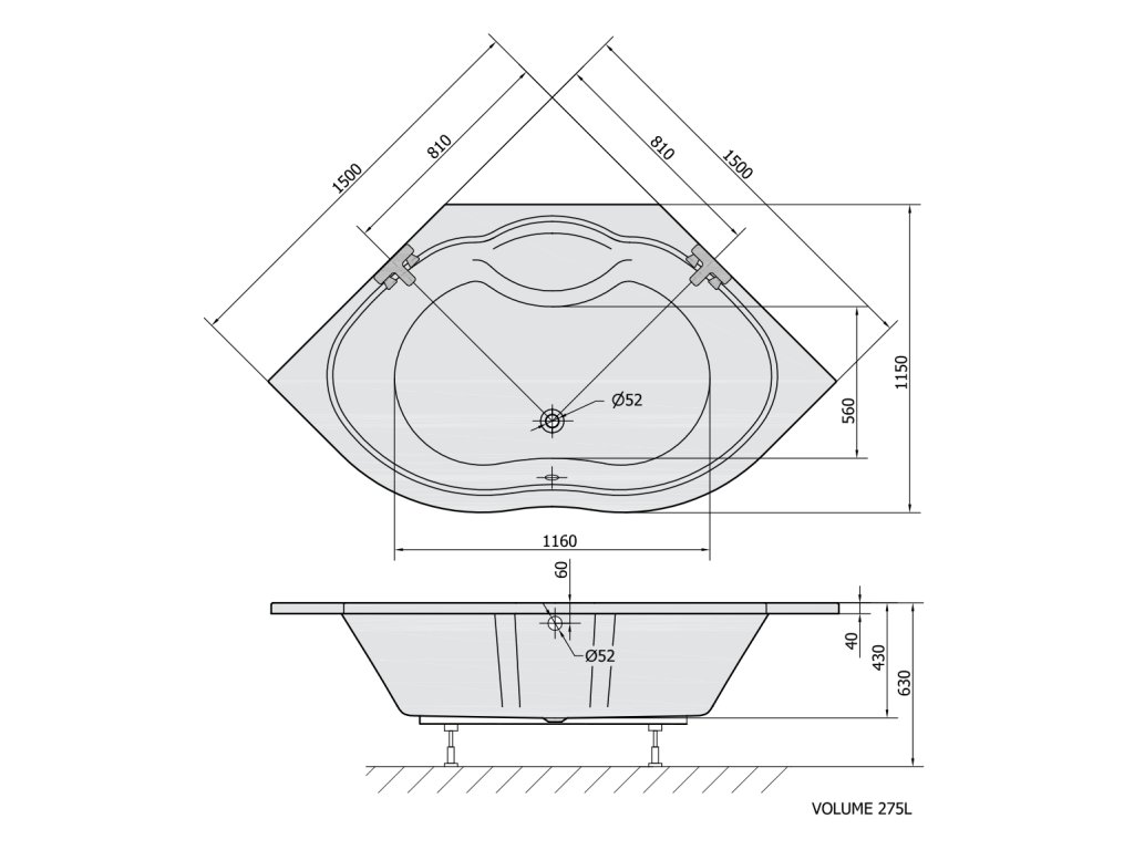 Polysan MAREA rohová vana 150x150x43cm, bílá 92111