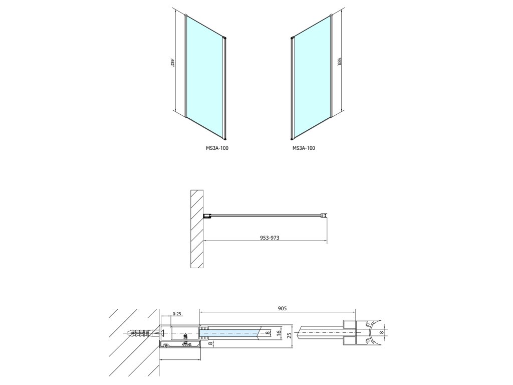 Polysan MODULAR SHOWER stěna k instalaci na zeď, pro připojení otočného panelu, 1000 mm MS3A-100
