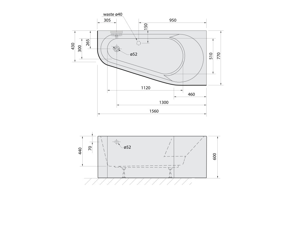 Polysan PROJEKTA R MONOLITH asymetrická stojící vana 156x77x60cm, bílá 21111M