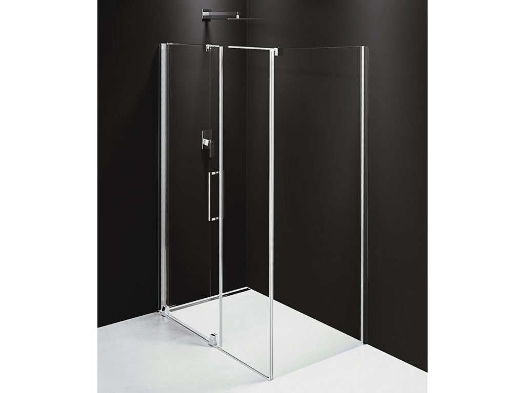 • Dvojdílné sprchové dveře do prostoru (pevná a posuvná část) s hliníkovými profily v chromu nebo matně černé povrchové úpravě