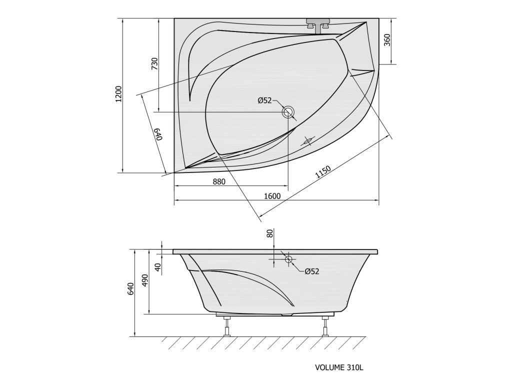 Polysan TANYA L asymetrická vana s konstrukcí 160x120x49cm, bílá 65219