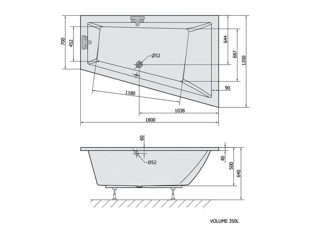 Polysan TRIANGL R asymetrická vana 180x120x50cm, bílá 20611