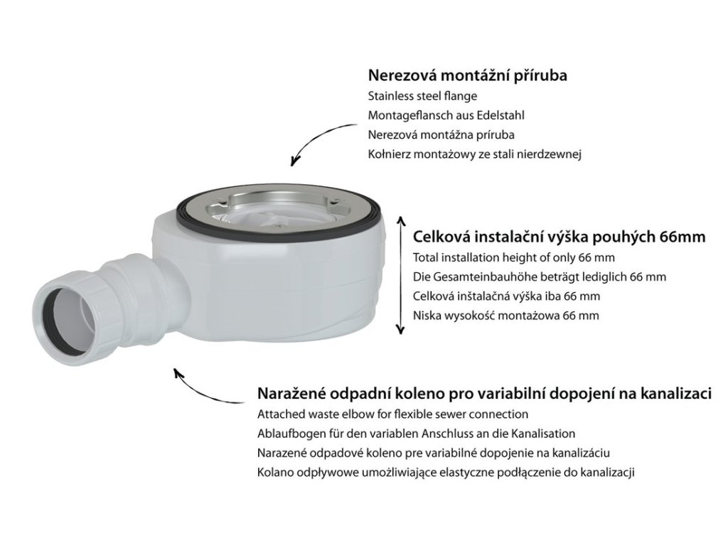 Polysan Vaničkový sifon, průměr 90mm, DN40, nízký 17672