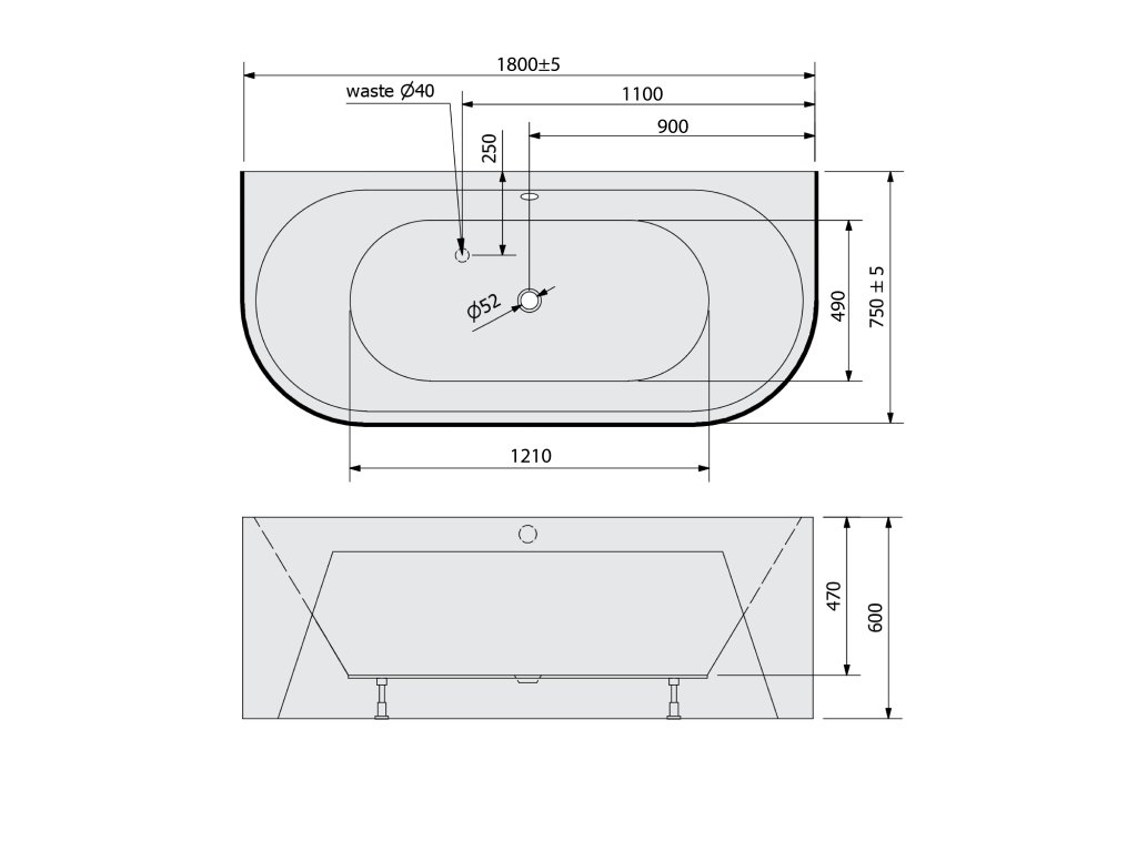Polysan VIVA D MONOLITH nástěnná stojící vana 180x75x60cm, bílá/černá 89139MB