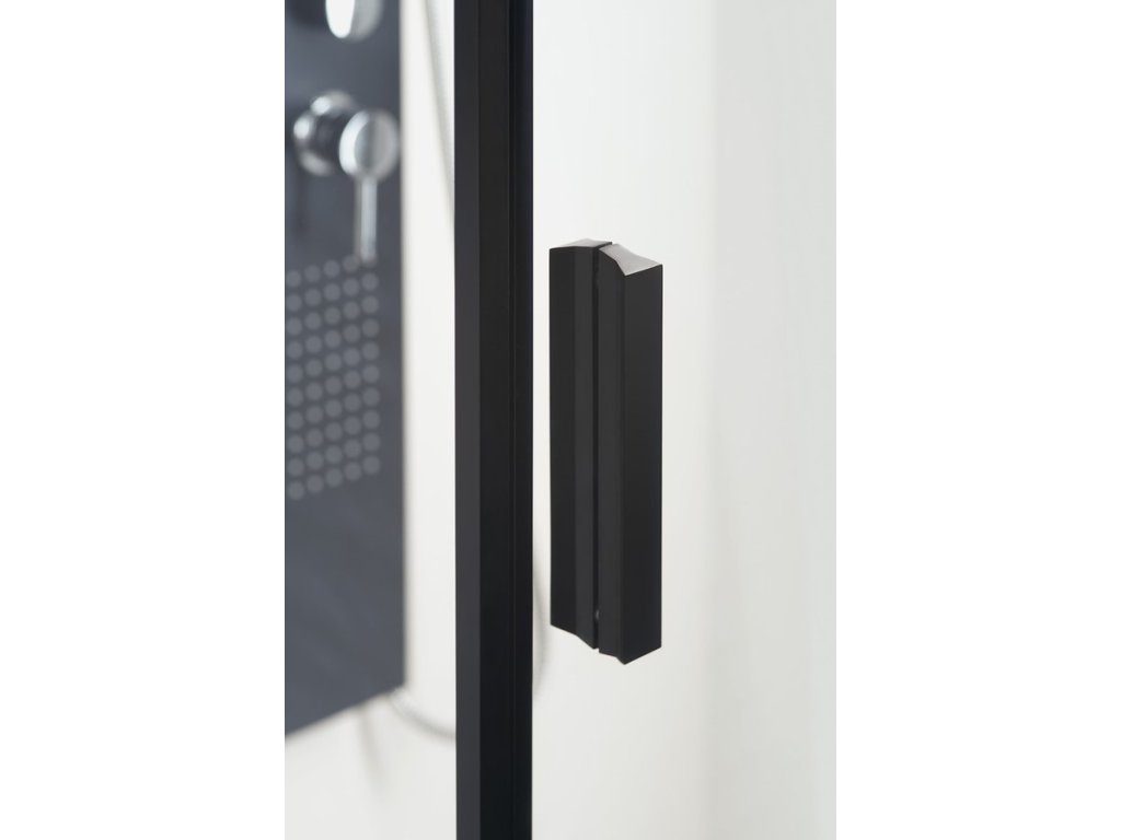 Speciálně navržené madlo pro pohodlné otevírání dveří. Ploché magnetické těsnění skryté v hliníkovém profilu v moderním matně černém provedení. Stěnové nerovnosti skryje hliníkový profil v černé, do kterého lze zasunout sklo dle potřeby až 20 mm. Otočný profil se zvedací funkcí pro pohodlné otevírání.
