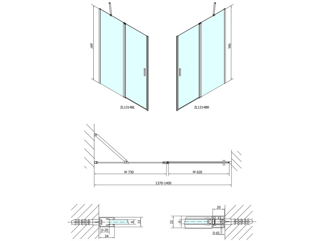 • Dveře je možno instalovat do niky nebo v kombinaci s boční stěnou, umožňují variabilní instalaci s levým nebo pravým otevíráním