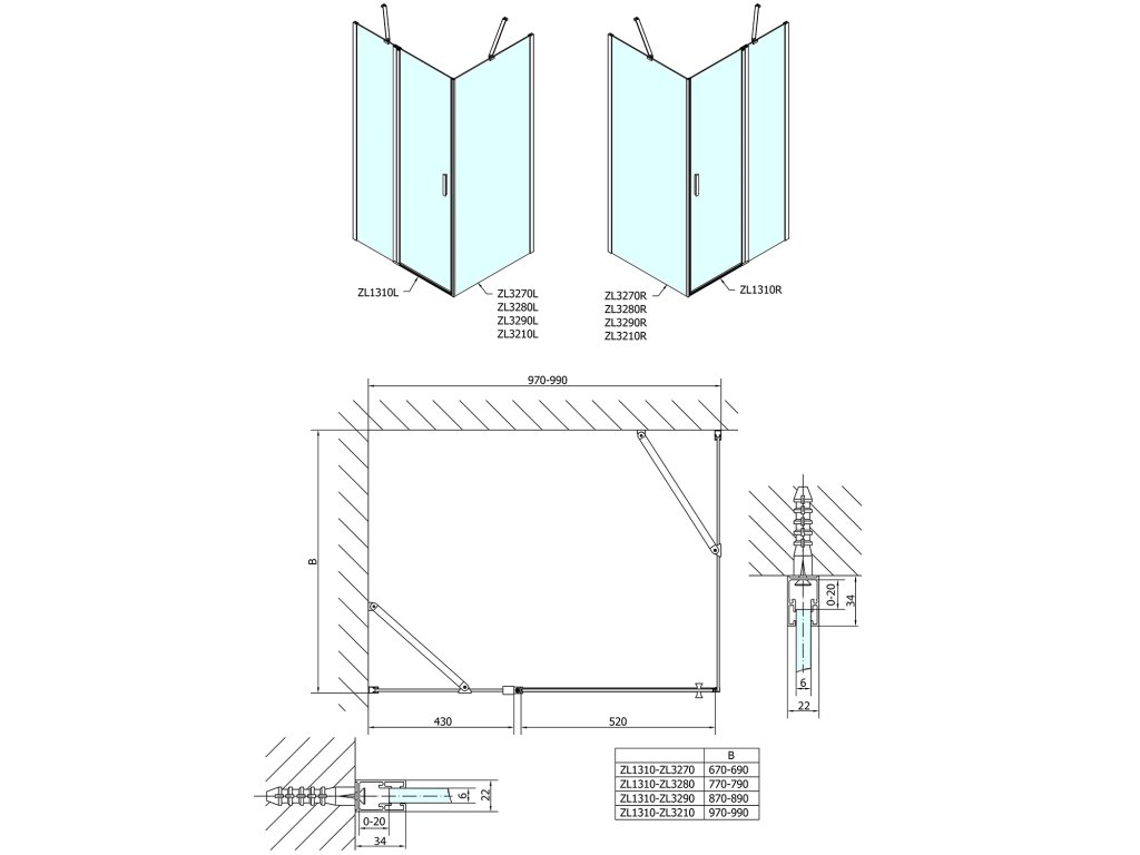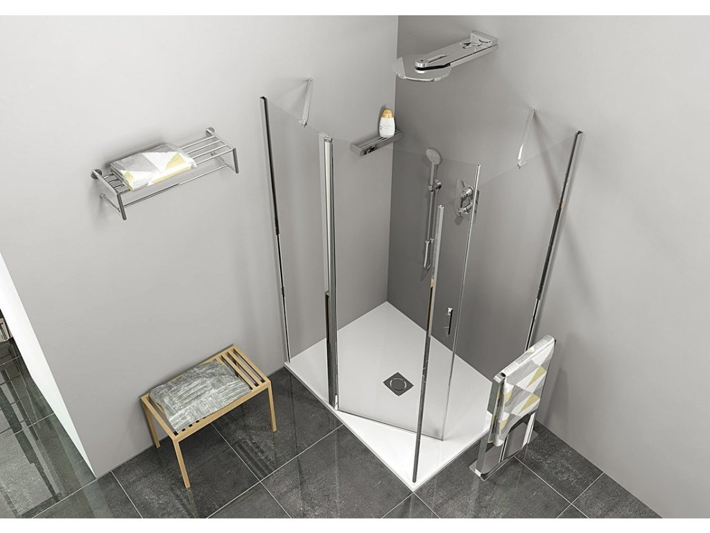 • Skládací dveře 700 až 900 mm v provedení levá a pravá lze instalovat do niky nebo v kombinaci L/R vytvořit čtvercovou nebo obdélníkovou zástěnu s rohovým vstupem