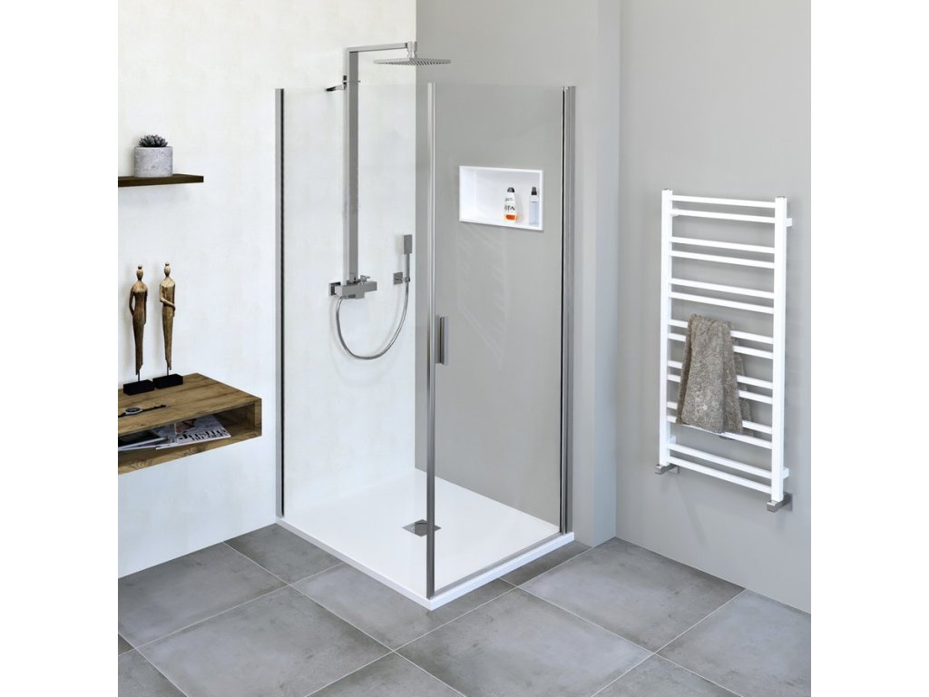 • Skládací dveře 700 až 900 mm v provedení levá a pravá lze instalovat do niky nebo v kombinaci L/R vytvořit čtvercovou nebo obdélníkovou zástěnu s rohovým vstupem